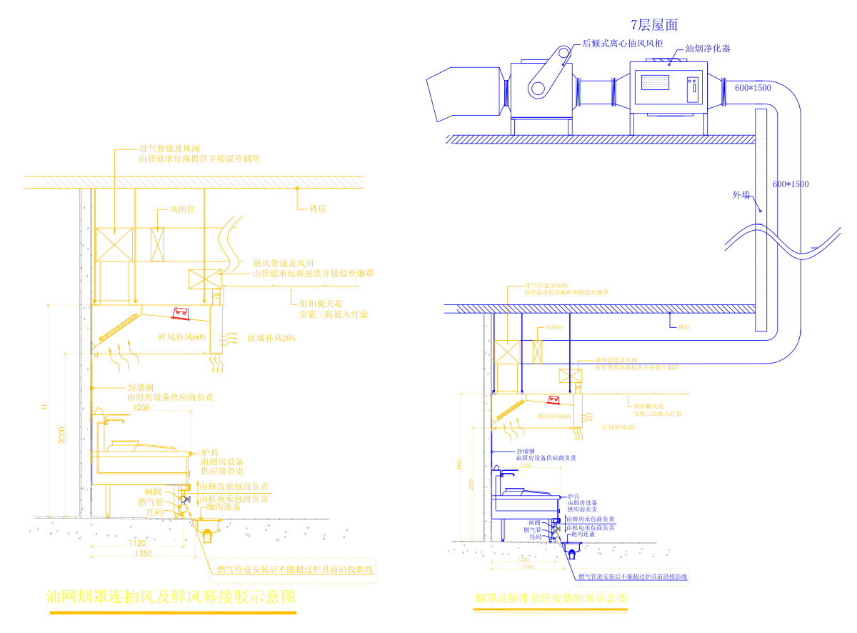 廚房的排煙系統主要由集煙罩、排煙管道、油煙凈化器、排煙風機(含消音器)和廚房整體補風裝置構成。